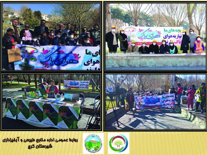 در این راستا؛ اداره منابع طبیعی و آبخیزداری شهرستان کرج در روز جمعه مورخه 29 دی ماه، با حضور کودکان کار شهرستان، مشارکت سازمان سیما، منظر و فضای سبز شهرداری کرج و حامیان و همیاران طبیعت، سمن ها و دوستداران محیط زیست نسبت به برگزاری همایش بیاد ماندنی روز ملی هوای پاک اقدام نمود.
