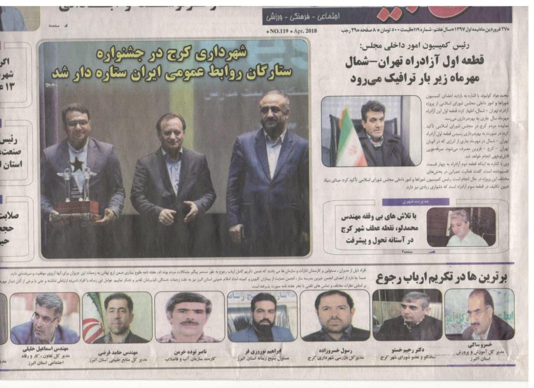 به گزارش پایگاه اطلاع رسانی اداره کل منابع طبیعی و آبخیزداری استان البرز؛ به نقل از طلوع بیداری، مدیر کل منابع طبیعی " به جهت پیگیری مستمر امور و رفع مشکلات مردم " جزء دستگاههای برتردر تکریم ارباب رجوع " قرار گرفت.