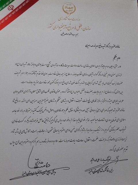 به گزارش پایگاه اطلاع رسانی اداره کل منابع طبیعی و آبخیزداری استان البرز؛ در بیست و ششمین روز از اسفندماه نود و شش؛ به منظور تجدید میثاق با آرمان های امام راحل و گرامیداشت یاد و خاطره شهیدان والا مقام؛ از خانواده شهیدان روح الله و نورالله امیری دیدار و تجلیل بعمل آمد.