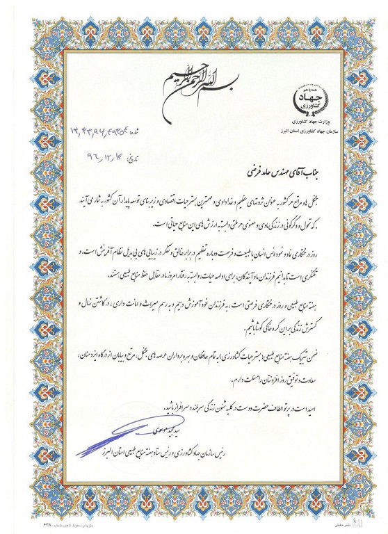 پیام تبریک رئیس سازمان جهاد کشاورزی استان البرز بمناسبت گرامیداشت " روز درختکاری و هفته منابع طبیعی "
