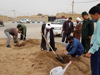 مراسم غرس نهال توسط روحانیون در روستاهای منتخب شهرستان نظرآباد