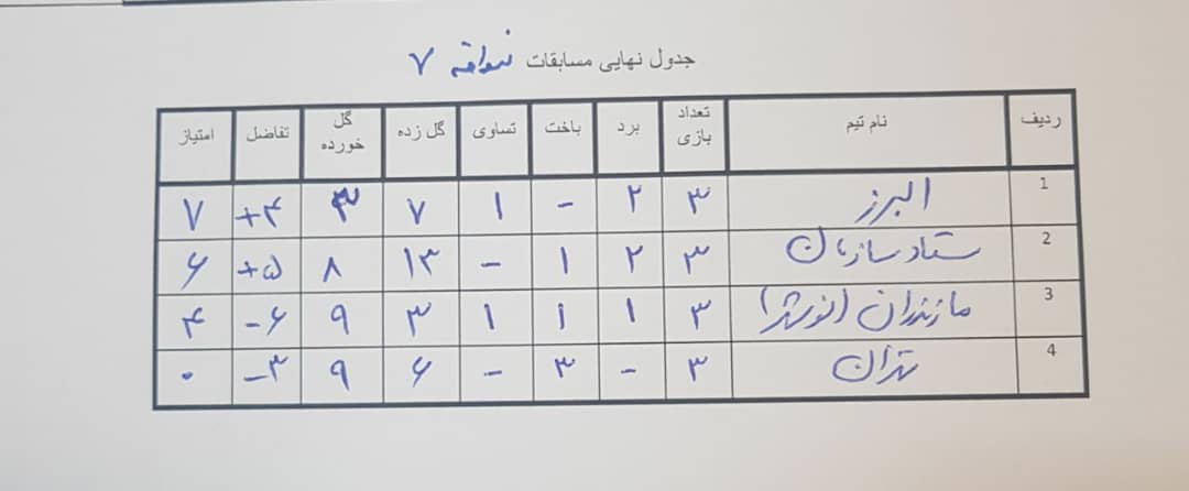 به گزارش پایگاه اطلاع رسانی اداره کل منابع طبیعی و آبخیزداری استان البرز؛ در سری مسابقات سومین جشنواره فرهنگی، ورزشی سازمان جنگلها، مراتع و آبخیزداری کشور، بر اساس جدول نهایی مسابقات فوتسال منطقه 7، تیم فوتسال اداره کل منابع طبیعی البرز در مقابل تیم های ستاد سازمان جنگلها، نوشهر و تهران، صدر نشین و به دور بعد صعود کرد.