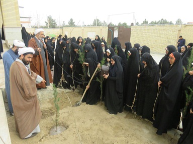 برگزاری مراسم غرس نهال در مدرسه علمیه خواهران ماهدشت توسط بانوان طلبه