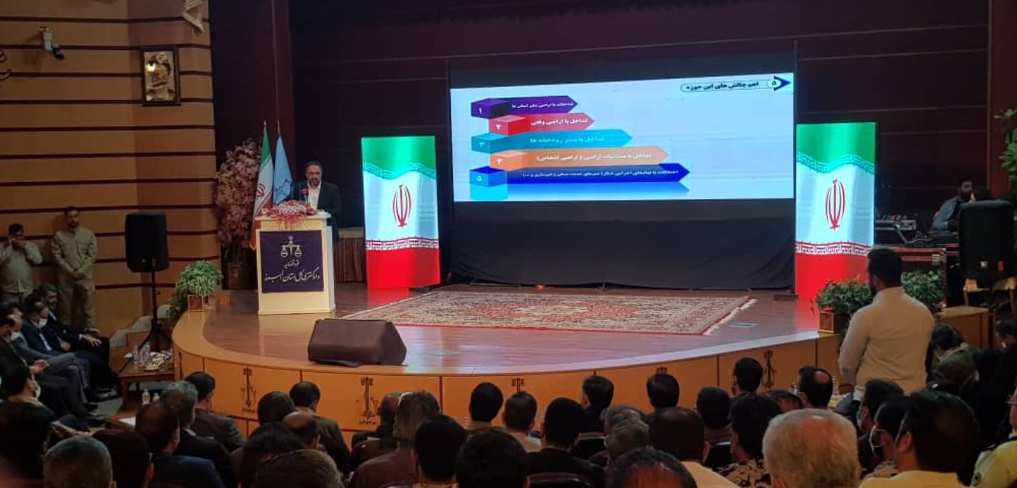 در ابتدای این مراسم، حسین فاضلی هریکندی، رئیس کل دادگستری استان البرز، ضمن عرض خیر مقدم خدمت مدعوین به استان البرز و قدردانی از زحمات مدیر کل منابع طبیعی و آبخیزداری و مدیر کل ثبت اسناد و املاک البرز و تمامی دست اندرکاران برای به سرانجام رسیدن طرح کاداستر و تعیین و تکلیف اراضی ملی استان، بیان کرد: تا اوایل سال 1398 سند کاداستری فقط برای 45 هزار هکتار که 35 درصد اراضی ملی بود، صادر شد، و در این خصوص افزود: در سه سال گذشته با همت ادارت کل منابع طبیعی و آبخیزداری و ثبت اسناد و املاک البرز، تدبیر خاصی برای صیانت از حقوق عامه به ویژه در بخش زمین در مجموعه قضایی استان البرز انجام شد که نمونه آن تشکیل قرارگاه صیانت از بیت المال و مقابله با تغییر کاربری استان یعنی طرح کاداستر بوده است.
