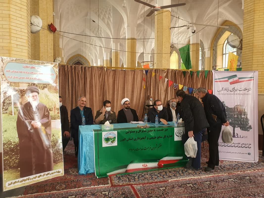 ۶- توزیع نهال رایگان مثمر بین نمازگزاران توسط همکاران شهرستان کرج و یگان حفاظت