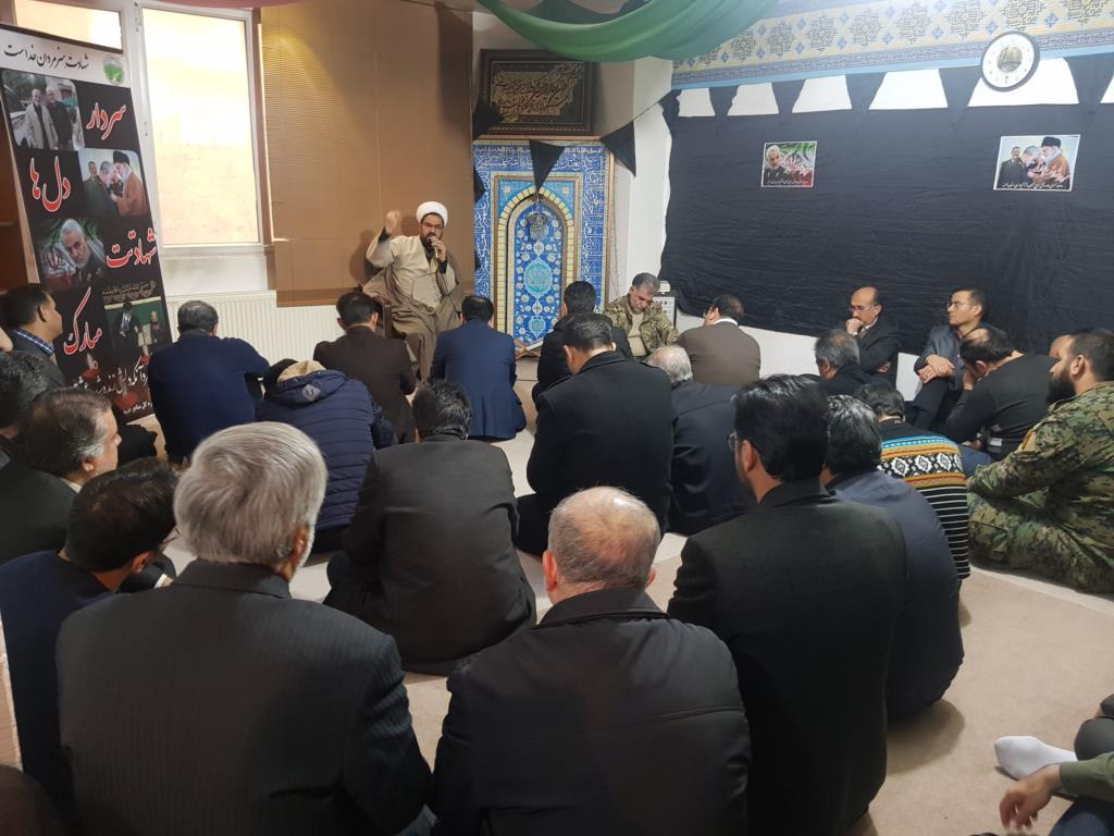 در اين مراسم كه با حضور مديركل، معاونين، روساي ادارات شهرستانها و همكاران برگزار گرديد پس از قرائت زيارت عاشورا و مداحي ، حجت الاسلام والمسلمين ندرلي مسئول حوزه نمايندگي ولي فقيه در اداره كل منابع طبيعي و آبخيزداري استان طي سخناني به بیانات گوهر بار حضرت زهرا(س) اشاره نمود که مي فرمايند "هر كسي خالص ترين اعمال خود را به سوي خدا بفرستد خداوند بهترين مصلحت را براي او نازل مي كند ".ایشان در ادامه معنويت و اخلاص را از ويژگي های برجسته سردار قاسم سليماني مطرح نمود.